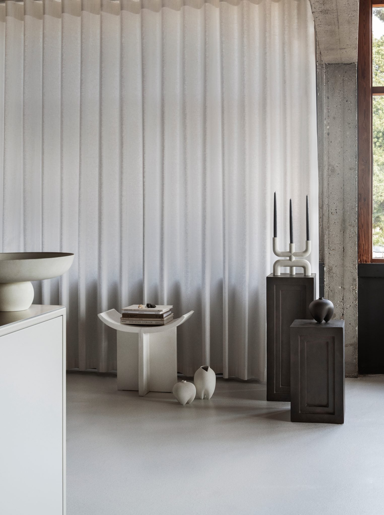 PODIUM allows you to recreate the atmosphere of an art gallery in your home. Inspired by the architectural details of facades, each podium features a sculpted relief on two opposite sides, creating a magnificent play of shadows that changes throughout the day, depending on the light.