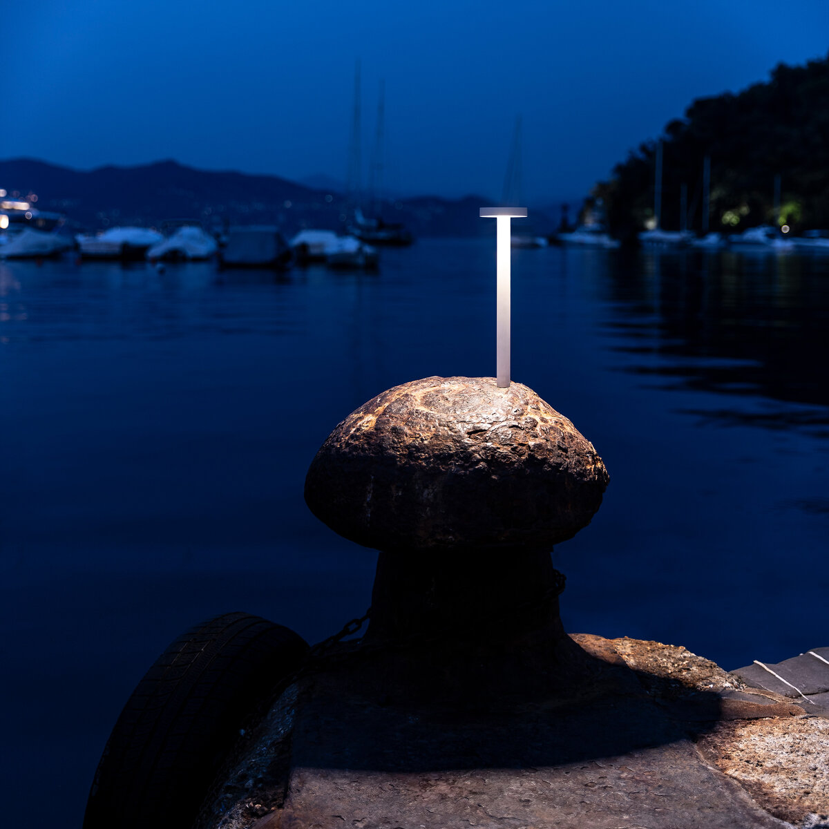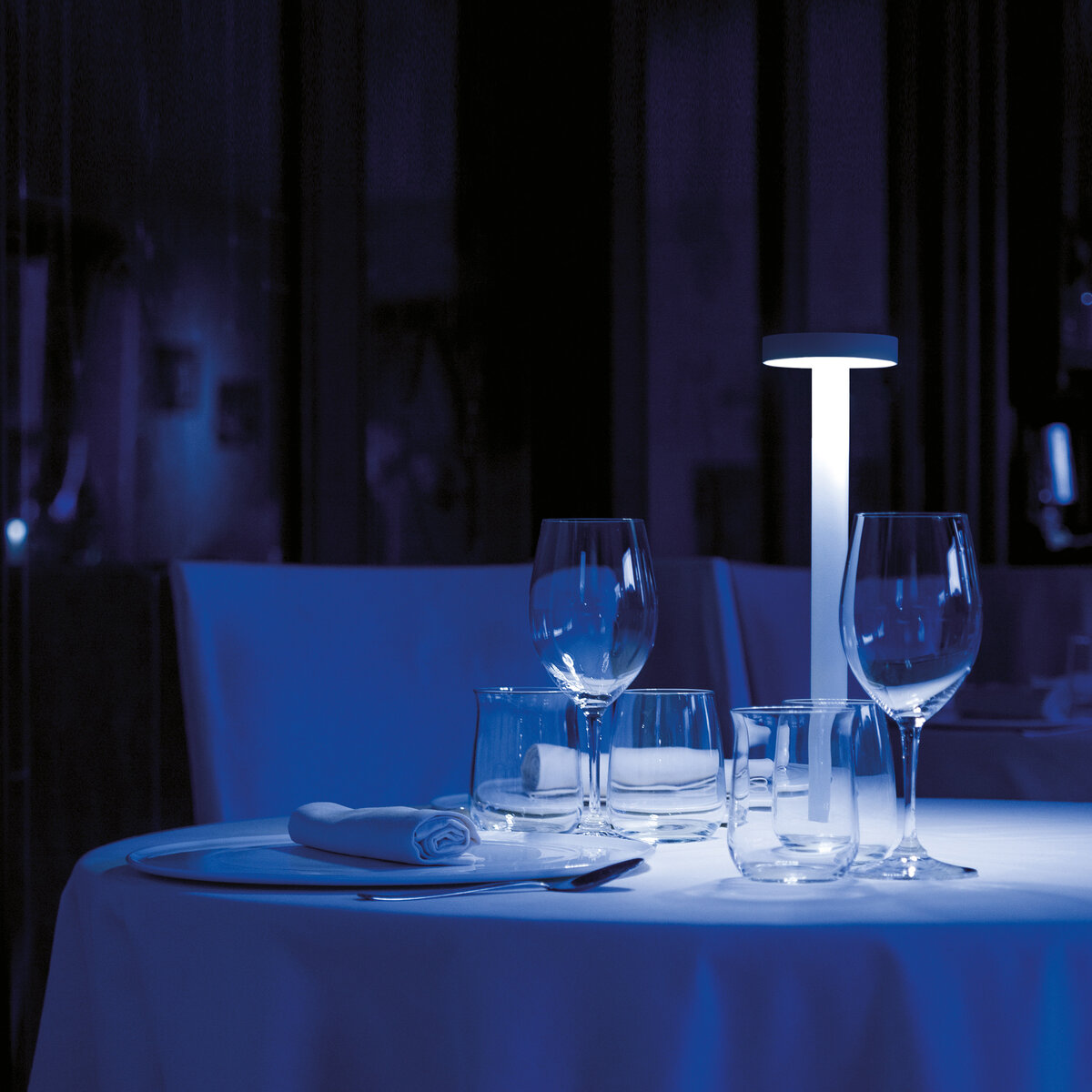 A luz quente e difusa cria uma atmosfera acolhedora e intimista, substituindo a vela tradicional por uma solução contemporânea segura e sofisticada. Disponível na variante branco opaco.