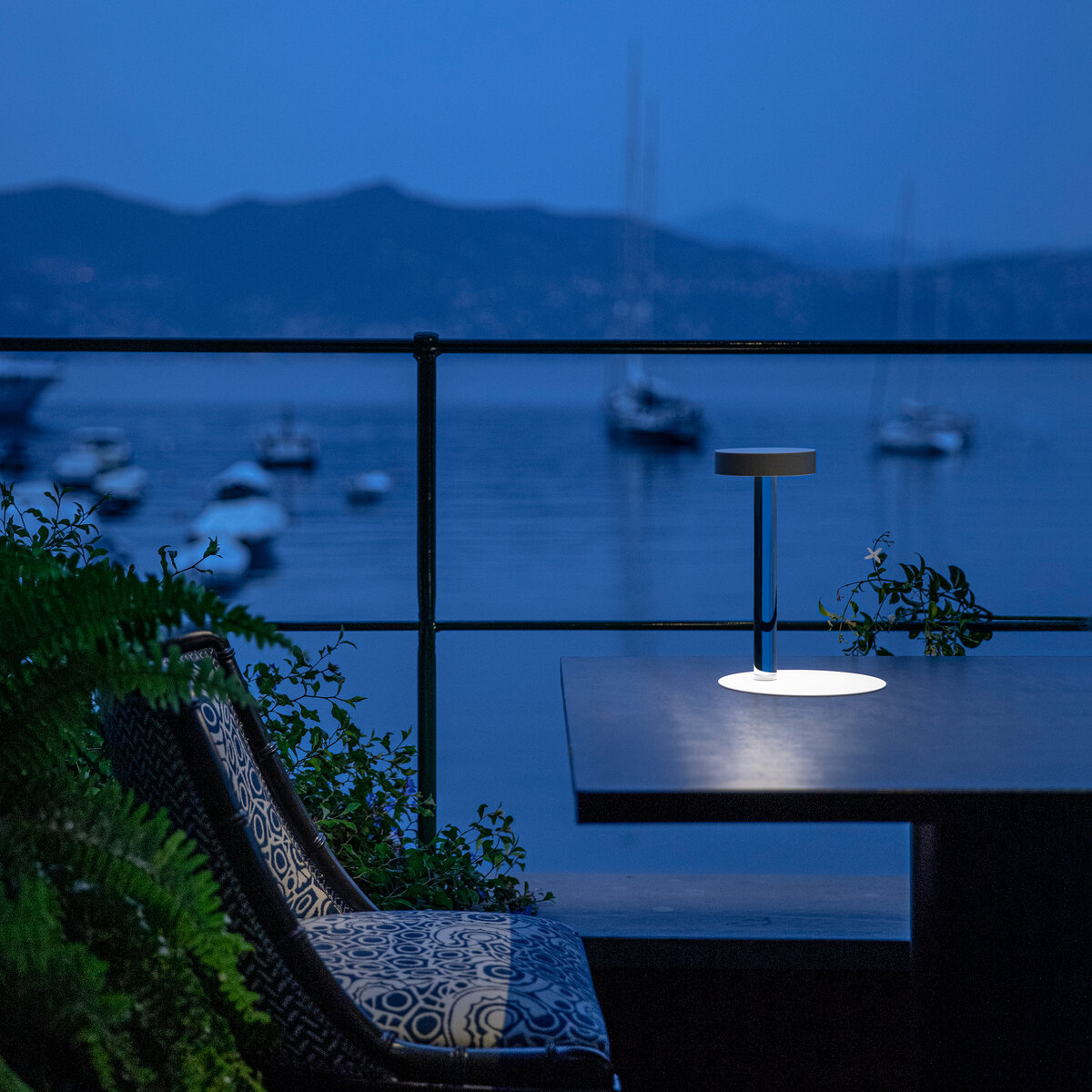 Fabricado em metal e metacrilato, apresenta uma base magnética e uma silhueta minimalista que se integra naturalmente em ambientes residenciais ou de restauração. A bateria recarregável oferece até 10 horas de autonomia e pode ser totalmente carregada em cerca de 4 a 6 horas, tornando-o ideal para restaurantes e espaços exteriores.
