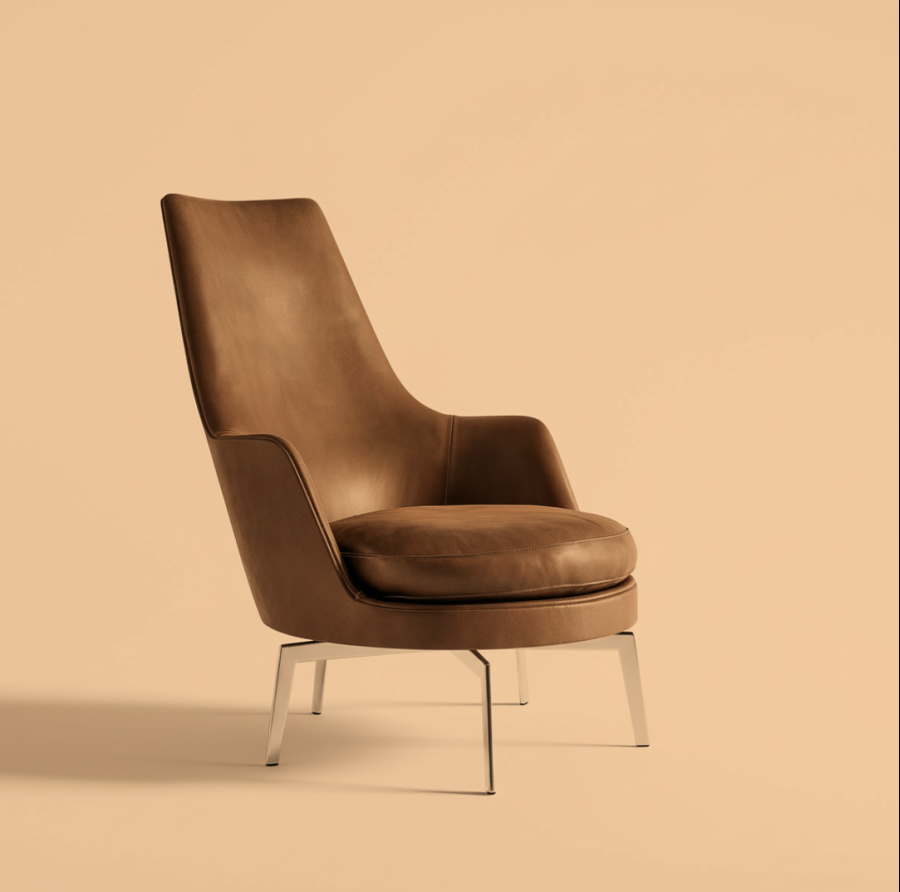Guscioalto is an especially comfortable, high-backed wing chair (bergère) known for its couture tailoring. The structure is an enveloping shell made of structural polyurethane foam, while the seat cushion is in goose down with a core insert in crushproof material. To ensure the utmost in comfort, the Guscioalto Soft version comes with additional padding in the seat back and an extra layer of Dacron and memory foam. For an extraordinarily comfortable seating experience, Guscioalto Light features a unique contoured upholstered element – with easily removable and washable upholstery – that attaches to the seatback with velcro. The Guscioalto armchairs come with a lightweight, uncluttered – swivel or non-swivel – base with metal legs, based on an exclusive Flexform design, and available in different finishes. They also come in a version with wood base and legs in solid wood, available in a number of shades.