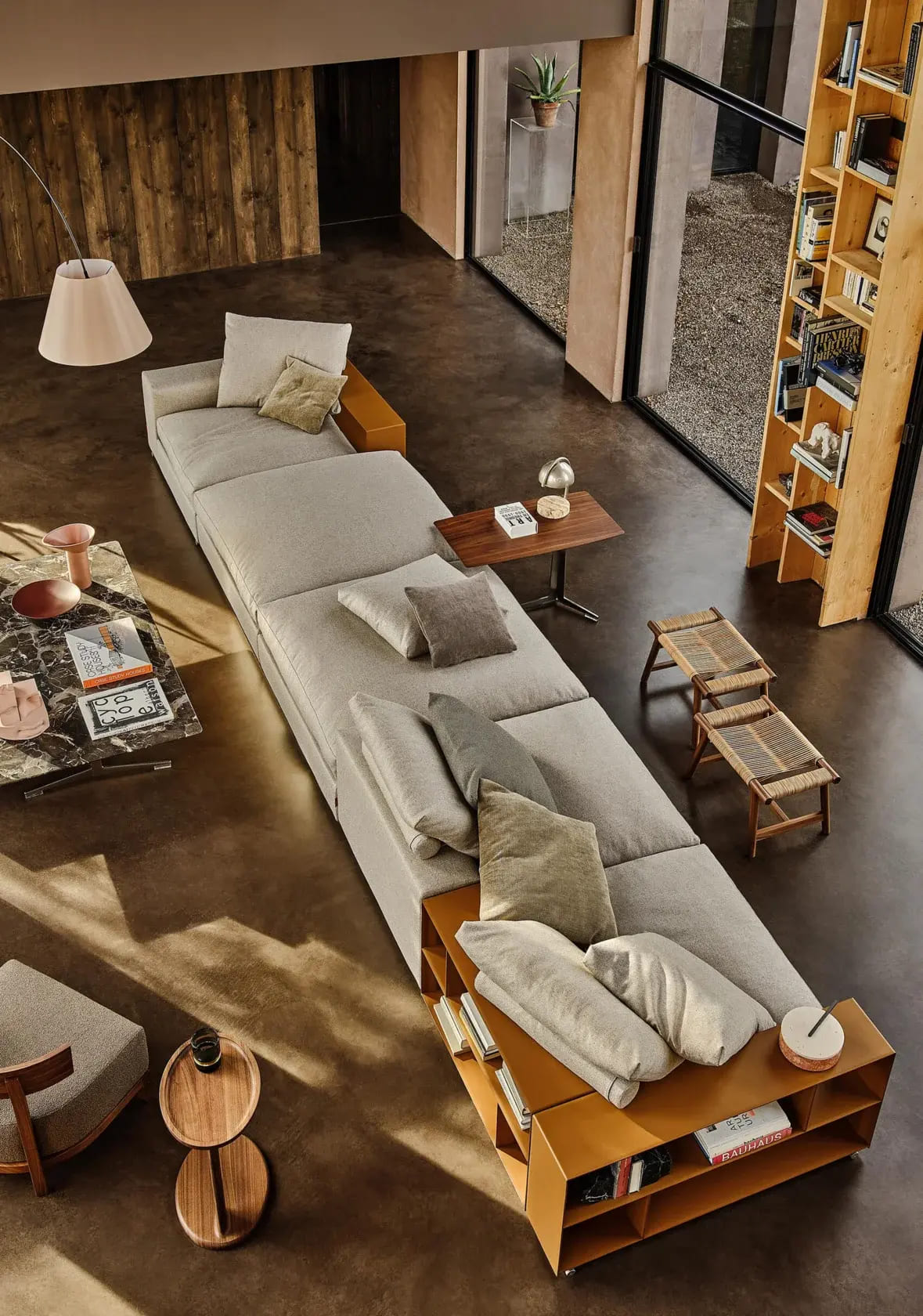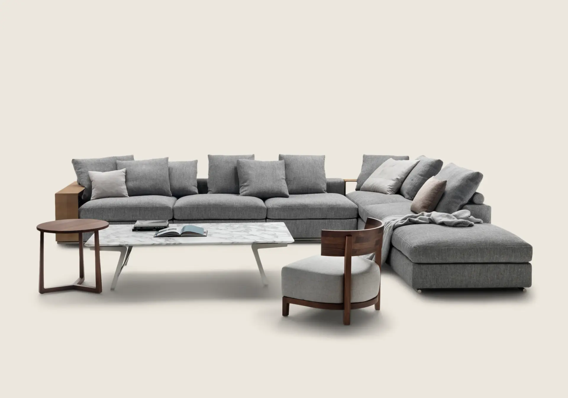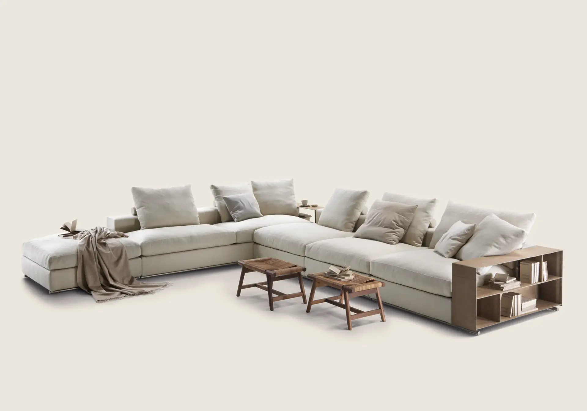 Um incontestável best-seller da coleção Flexform, o Groundpiece transformou o próprio conceito de sofá, introduzindo várias inovações. Em primeiro lugar, é uma linha desconstruída com novas proporções - o sofá Groundpiece é baixo e profundo, concebido como uma abordagem mais descontraída e casual ao sentar-se. O Groundpiece encarna a quintessência do conforto Flexform e é excecionalmente convidativo, graças às almofadas de penas de ganso de grandes dimensões. A Groundpiece permite também a personalização máxima dos elementos acolchoados que podem ser fabricados em plumas de ganso, na versão premium, ou em Dacron.