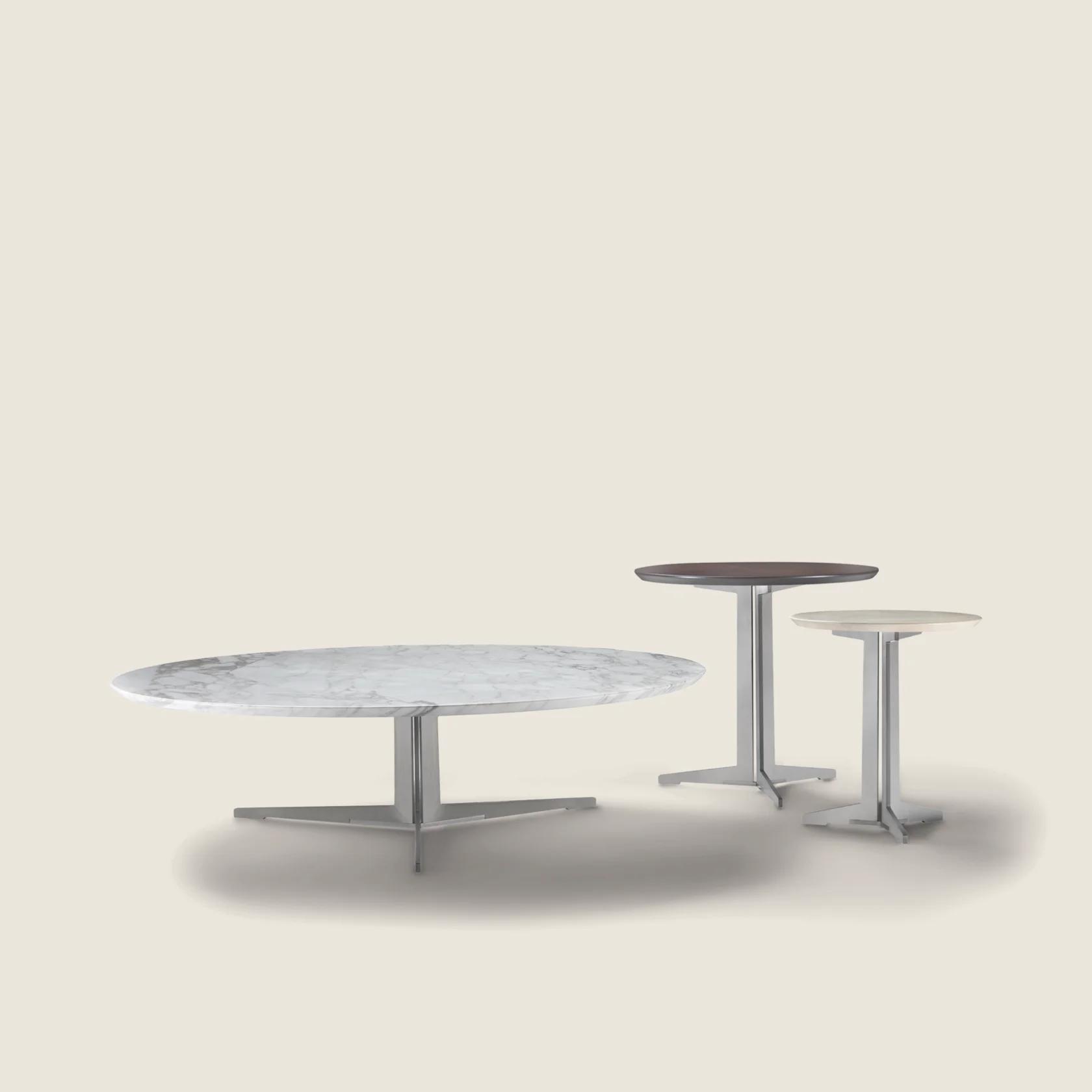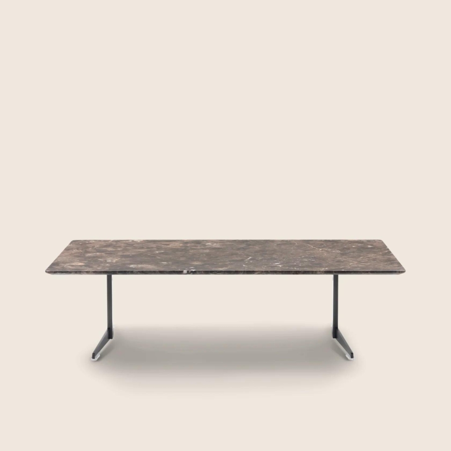 An extensive family of extremely versatile tables, coffee tables, side tables and cabinets, Fly is a genuine expression of the kind of “good design” upon which the entire Flexform collection is built. Purity of design, along with amazing practicality and the variety of finishes and sizes available, make Fly products synonymous with extreme versatility. The unique metal base of the Fly tables comes in an array of finishes, while the top – available in round, oval, square and rectangular shapes, in a number of different sizes – comes in wood, stained in a number of shades, or in various types of marble.