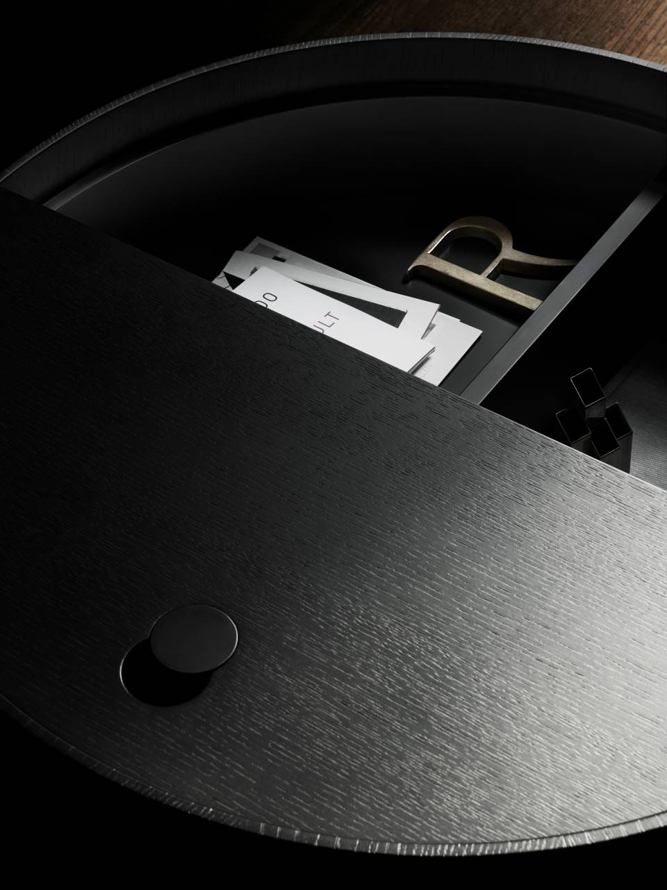 Derivada da mesa de cabeceira Moon de Mist-o, a variante Full Moon exibe um design elegante que valoriza a simplicidade circular ao mesmo tempo que incorpora praticidade com a sua porta de abrir interior. Esta característica distintiva permite um armazenamento discreto dentro da mesa, mantendo o seu visual limpo ao mesmo tempo que oferece espaço amplo para itens essenciais.