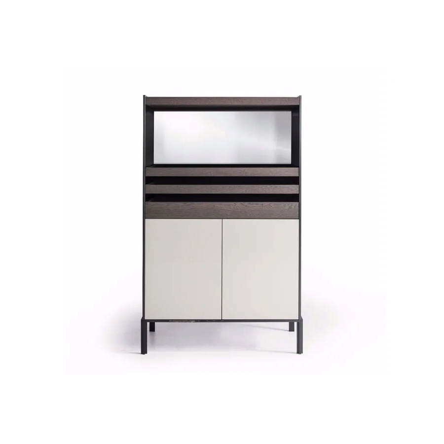 Unidades de gavetas perfeitamente proporcionadas, uma escolha atenta de materiais e tratamentos, como madeiras lacadas a mate ou brilhante e, nos novos acabamentos, cobre ou estanho, bem como a atenção aos detalhes individuais garantem que cada peça de mobiliário seja um objeto de beleza refinada, onde linhas e volumes se fundem harmoniosamente.