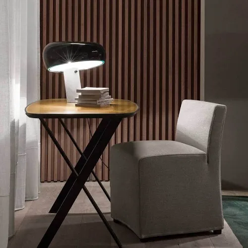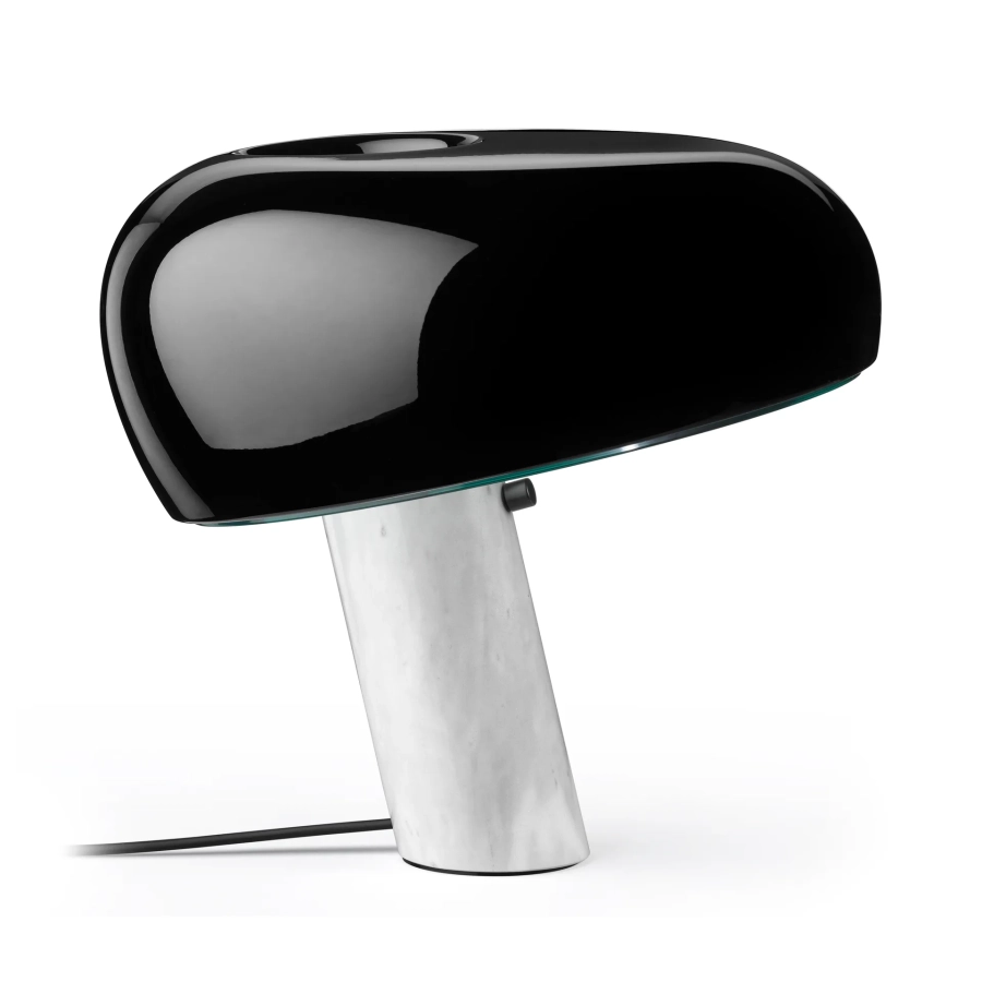 Snoopy is a table lamp. This lamp provides direct light. It is reminiscent of Snoopy the dog with its white body and black lampshade, but also resembles a designer mushroom. You can adjust the intensity of your lamp to create a subdued atmosphere.
