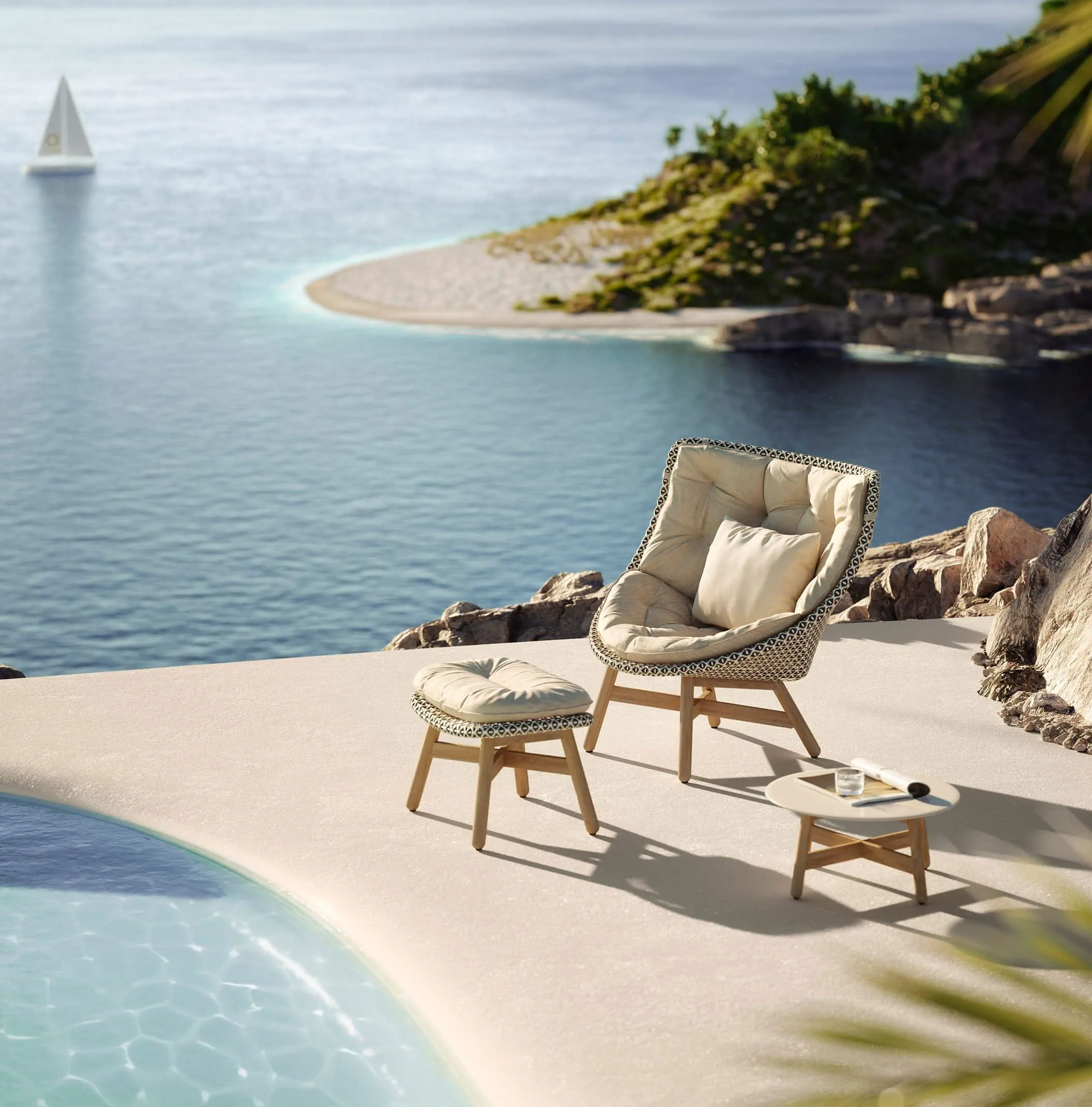 A collection that brings Dedon fibre seats for the first time and combines them with a solid teak base. The result is a captivative and immediatly pleasant collection for relaxing, eating and more.