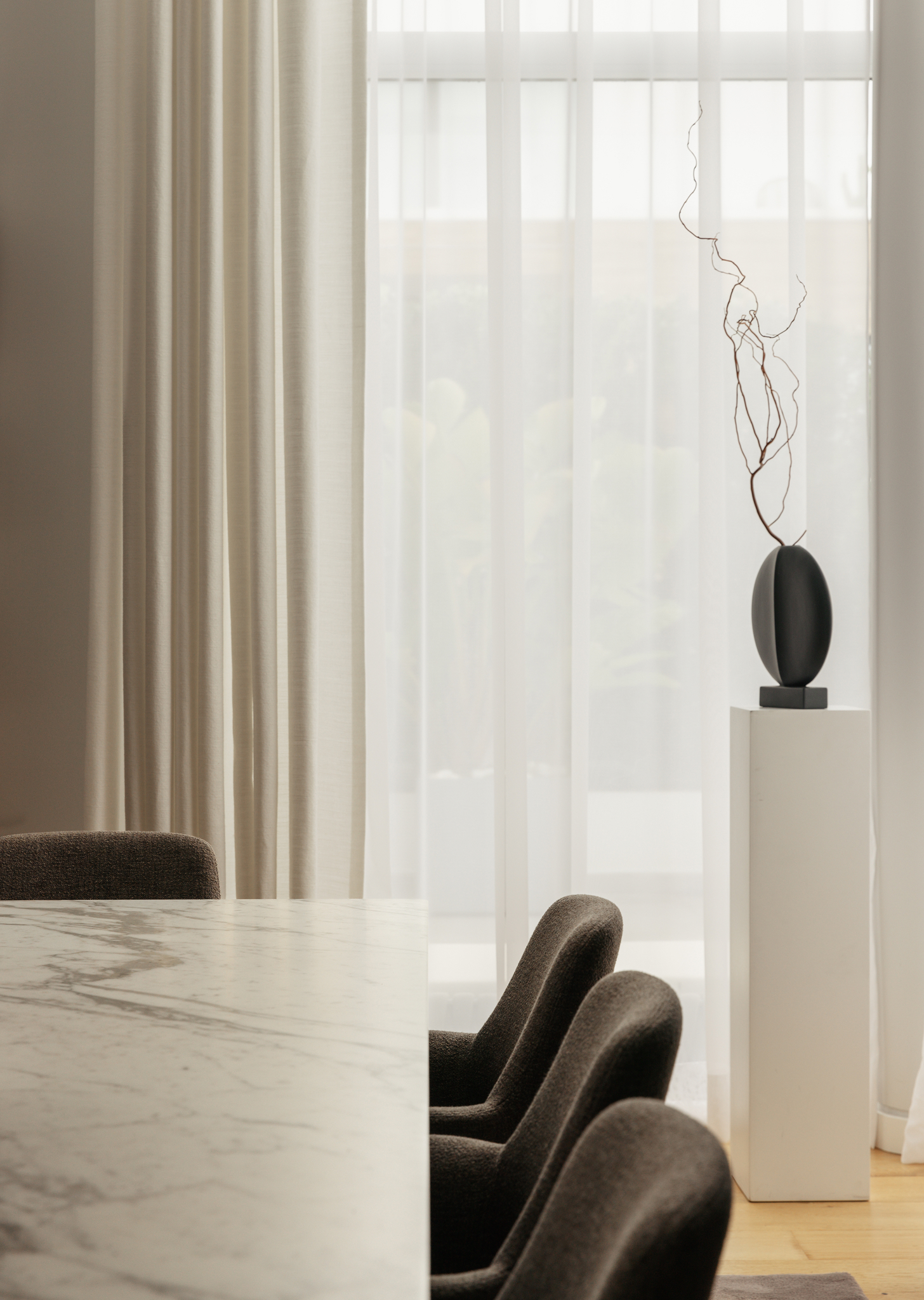 The end result proves that Design can achieve a perfect balance between warmth and serendipity. This is a home built on simple but textured layers, as in a warm embrace. Soft, suave, sensual, avoiding a too-linear and minimal perspective, while making sure it stays effective for the daily use of a family. By the sea, side by side.