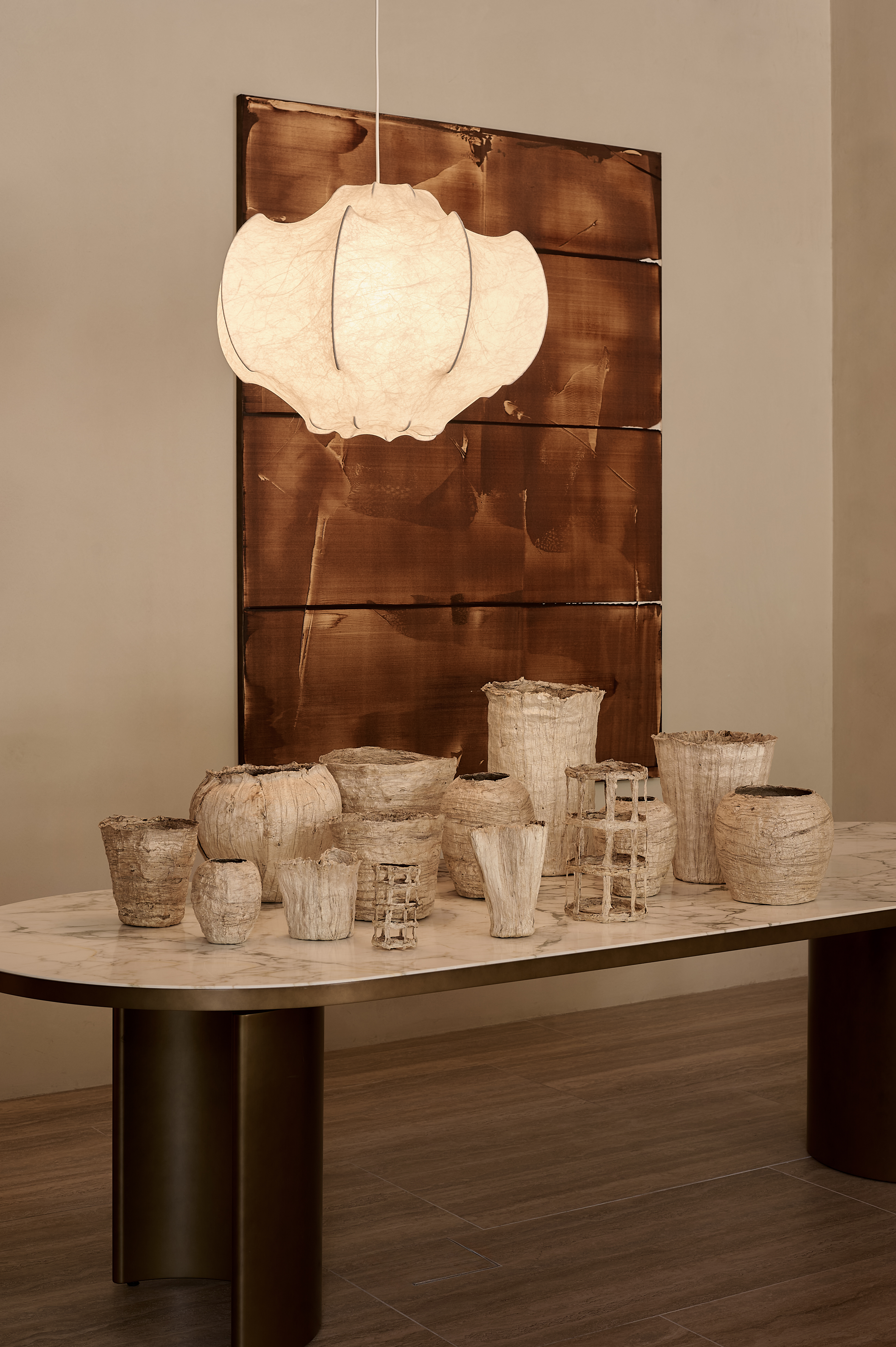 Sustained by Molteni’s constant support for talent in every shape and form, which in itself also shapes and forms what we perceive as the future of Design, Gabriel Tan brought forward his keen eye for scenography by curating an installation of washi lamps designed by his Studio, made in collaboration with Nao Washi, and showcased poetically alongside washi sculptures by Gen Taniguchi.