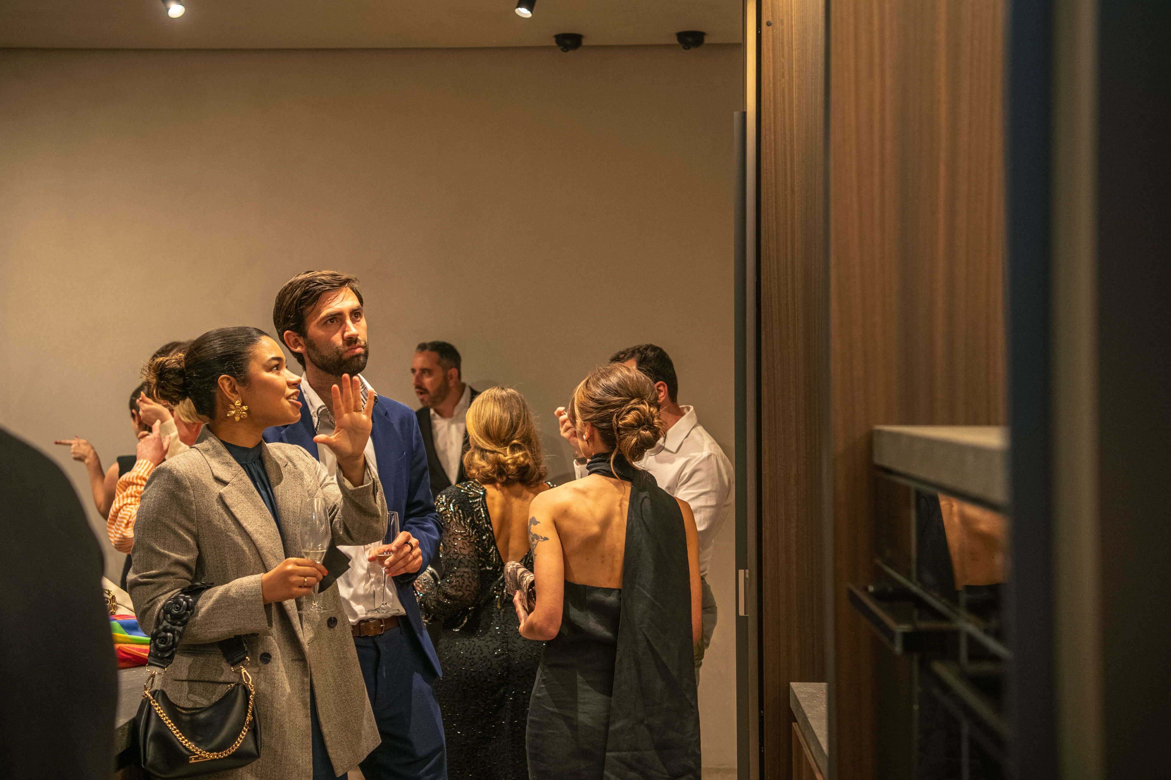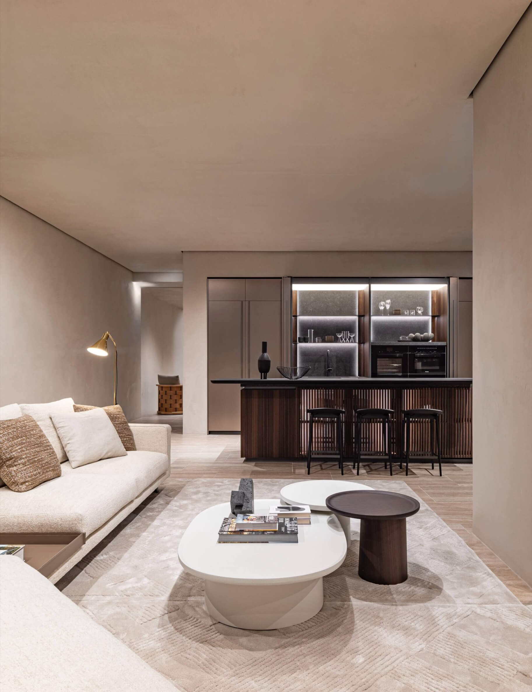 The journey through the store unfolds to reveal a meticulously crafted kitchen composition boasting the Hi-Line 6 island and Technical Columns, a testament to the brand’s dedication to creating harmony between form and function.