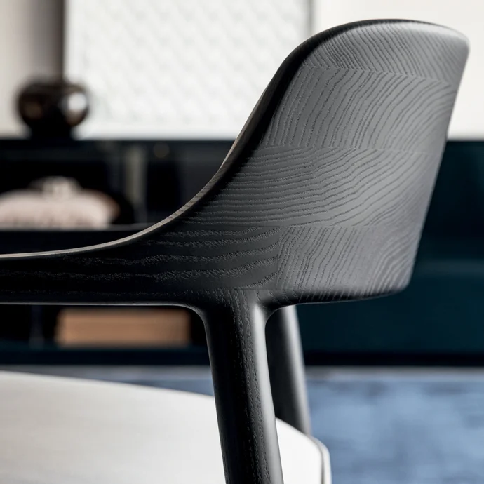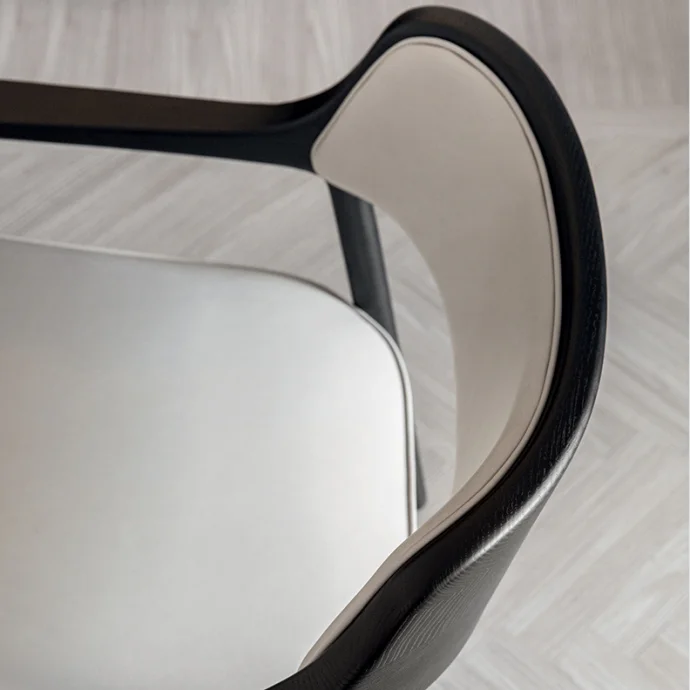 Seat and backrest are completed with soft padding upholstered in fabric or leather, chosen from the wide range of the Molteni&C collections.