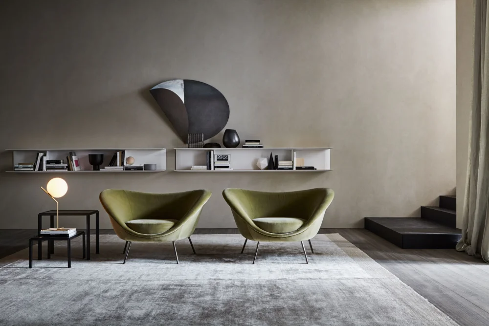 This armchair, a testament to mid-century design, draws inspiration from Gio Ponti's 1950s voyages across Latin America. Celebrated with the Wallpaper Design Award, it stands as a cherished icon in the Molteni&C collection. Its design, reminiscent of a protective shell, offers a comforting embrace with its soft cushioning, part of the trio of customizable elements that allow for a personalized touch. A hallmark of refined living spaces, this piece elegantly combines aesthetic allure with comfort.